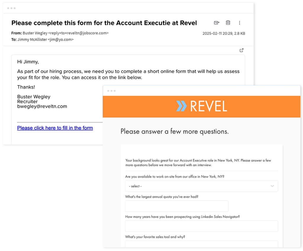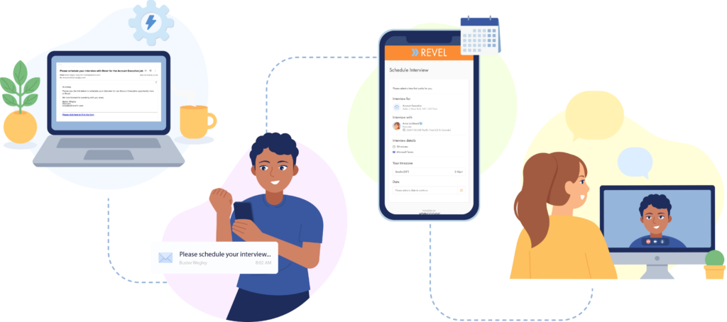 Create rules that automatically move qualifying applicants to the next stage of your process and ask them to self-schedule interviews.